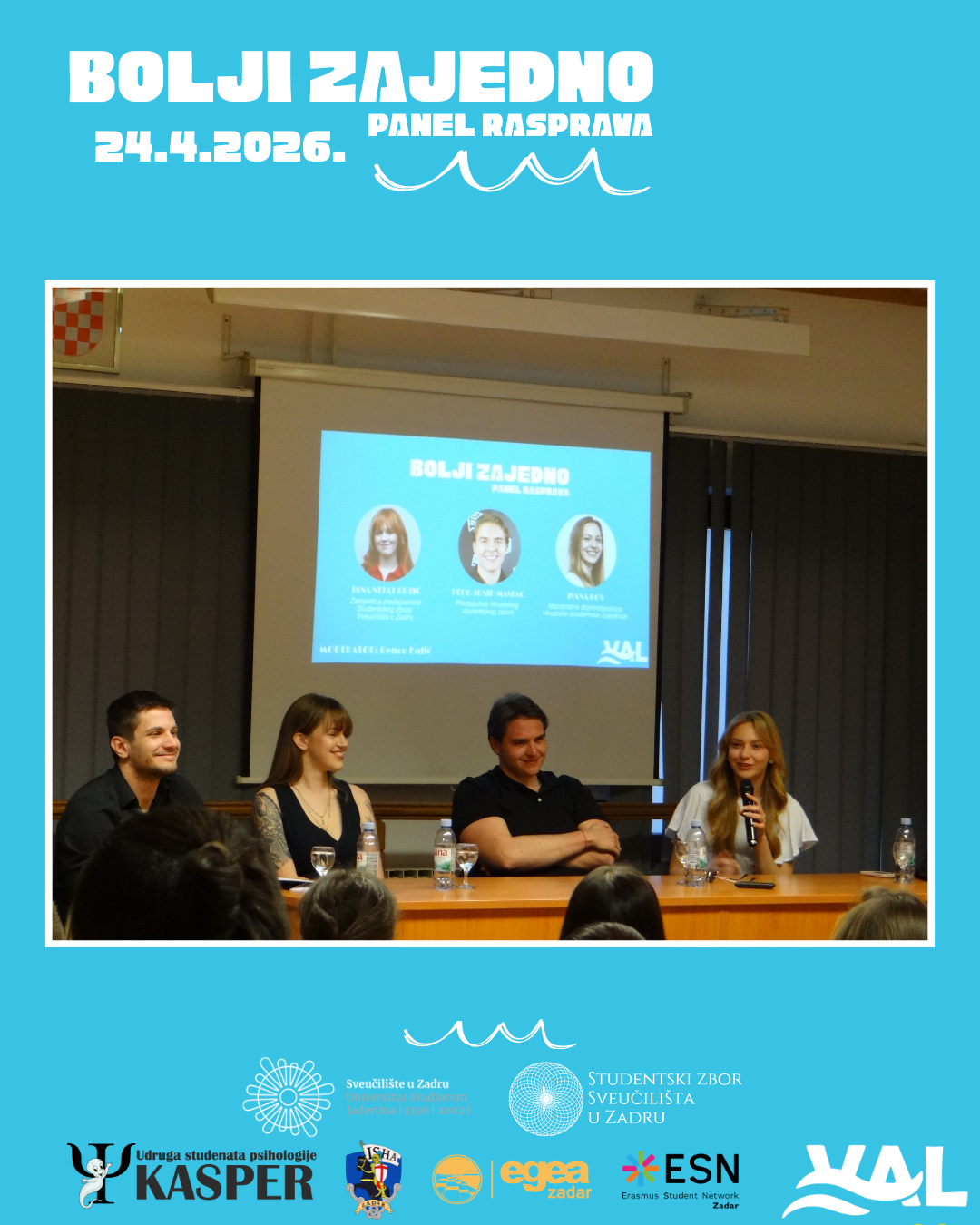 Studentski zbor Sveučilišta u Zadru, u suradnji sa studentskim udrugama USP Kasper, ISHA Zadar, EGEA i ESN Zadar, uspješno je organizirao konferenciju VAL, u sklopu koje je održana panel rasprava o aktualnim temama vezanim uz rad studentskih zborova i udruga.